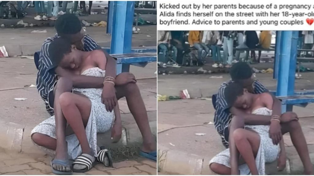 A photo of a 17-year-old girl and her 18-year-old boyfriend, reportedly kicked out of their homes due to the girl’s pregnancy, has surfaced online, drawing significant attention.