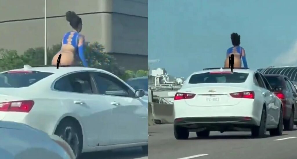 This Is Crazy! Lady twerks nak£d on top of a car in the middle of the road (Watch Video)
