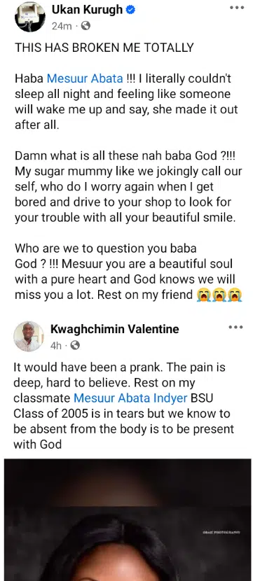 “Now that you are an Angel, I hope you will still be able to bake those fantastic cakes for all the hosts of heaven. Mesuur Abata, Rest easy girl.”