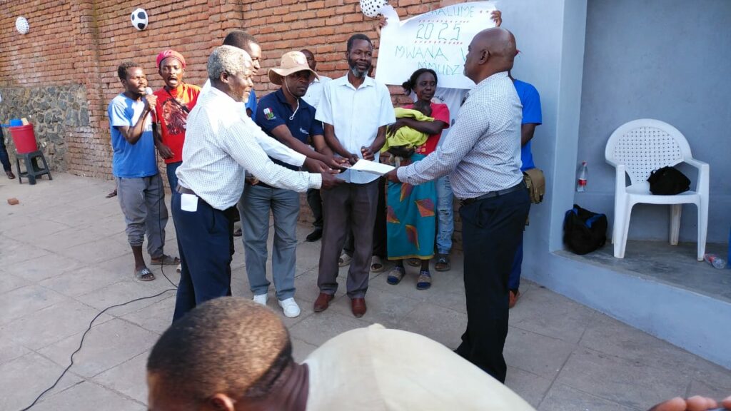 The Villagers who were led by Group Village Headman Anderson and Nanthoka carried placards with various messages on it and one of the message on the placards read: “Mafumu Pamodzi ndi ife tonse tikufuna Alex Chimwala 2025.”