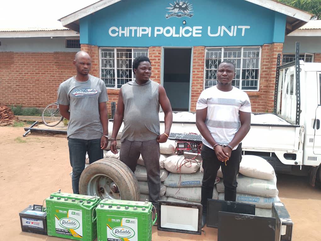 Chitipi Police Unit in Lilongwe has arrested three men for allegedly stealing 71 bags of cement, two computers among other items, valued at K6 million at a certain cement blocks factory at Njewa on 3 December 2024.