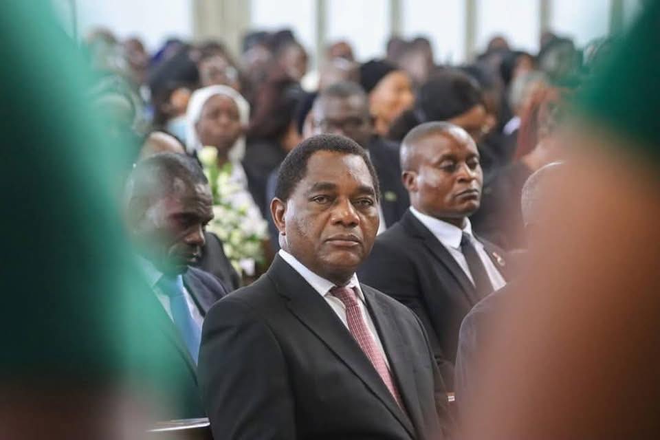 President Hakainde Hichilema joined mourners at the Anglican Cathedral of the Holy Cross for the official funeral of Professor Benjamin Mweene, the Former Deputy Secretary to the Cabinet for Finance and Economic Development.