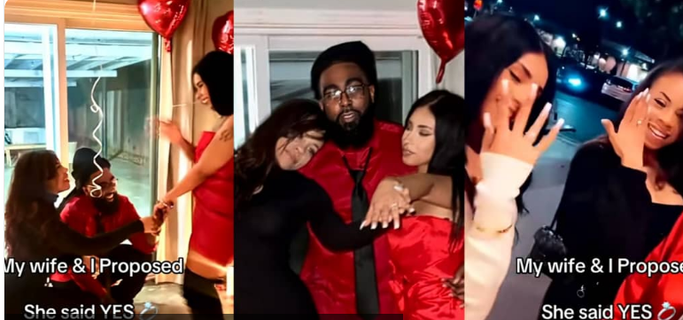 The video, shared on TikTok, shows the husband and wife together, with the caption: “My wife and I proposed, and she said yes.”