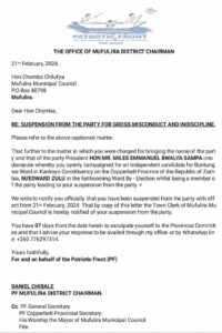 The Patriotic Front (PF) has suspended 15 councilors in Mufulira District on the Copperbelt for gross misconduct. The councilors have […]