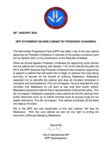 The opposition Democratic Progressive Party (DPP) has lambasted President Dr. Lazarus Chakwera for maintaining some old faces in his 29 […]