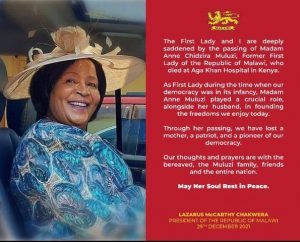 DPP politicizes Anne Muluzi’s death, attacks MCP