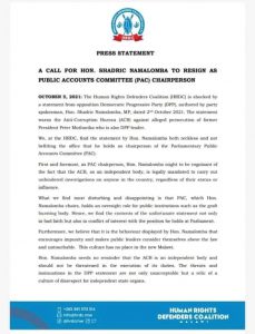 The Human Rights Defenders Coalition ( HRDC ) has called for the resignation of Shadreck Namalomba as the Chairperson of […]