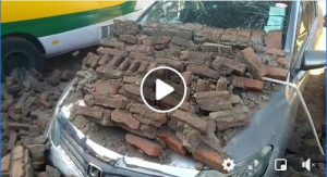 Church brick fence collapses, damages several vehicles