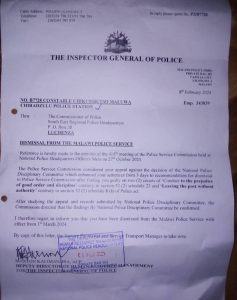 The Malawi Police Service has dismissed two police officers who were working at Thyolo Police for indiscipline and unauthorized absence […]