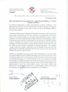 The Malawi Nurses’ Union (NONM) strongly condemns the assault on a nurse at Thyolo district hospital. NONM President Shouts Simeza […]