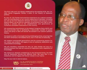 Former president Dr. Bakili Muluzi has said he will live to remember late John Zenus Ungapake Tembo as a loyal […]