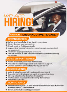 We are seeking a reliable, responsible, and attentive Driver & Carer to support a family with safe transportation and light […]