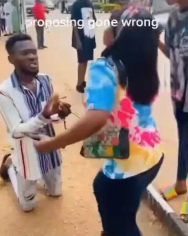 Nigerian lady has given an unexpected reaction to a public proposal by her boyfriend at their school. A video which […]